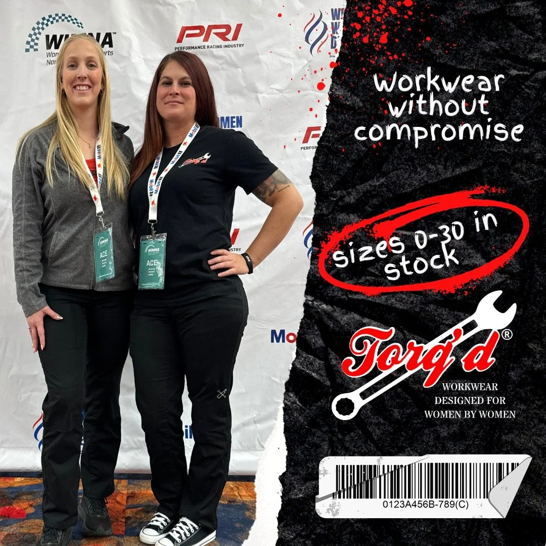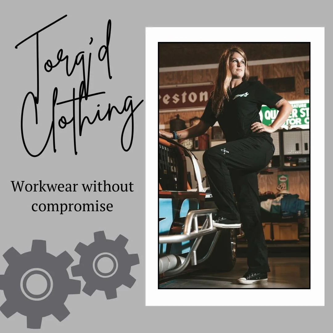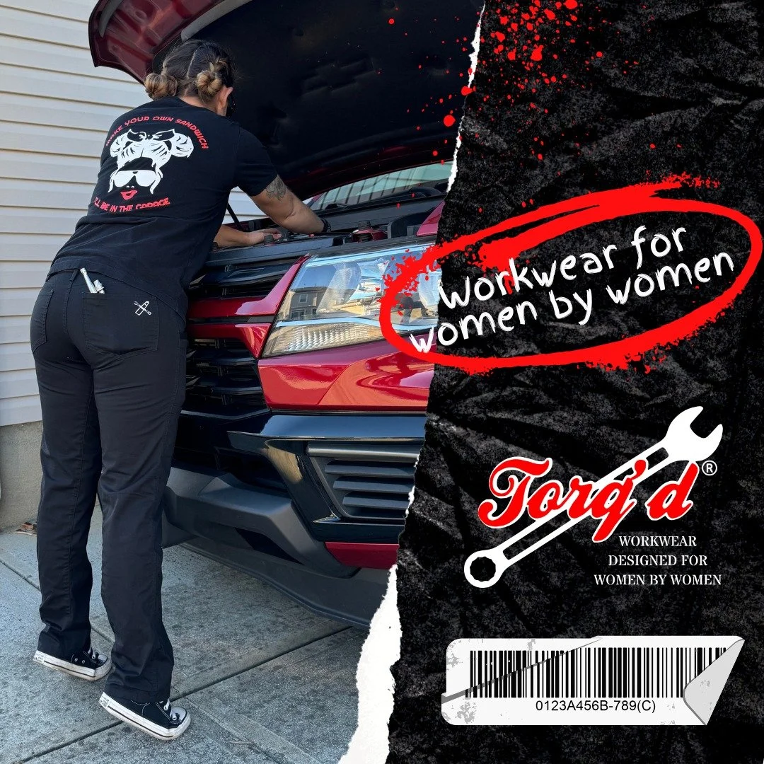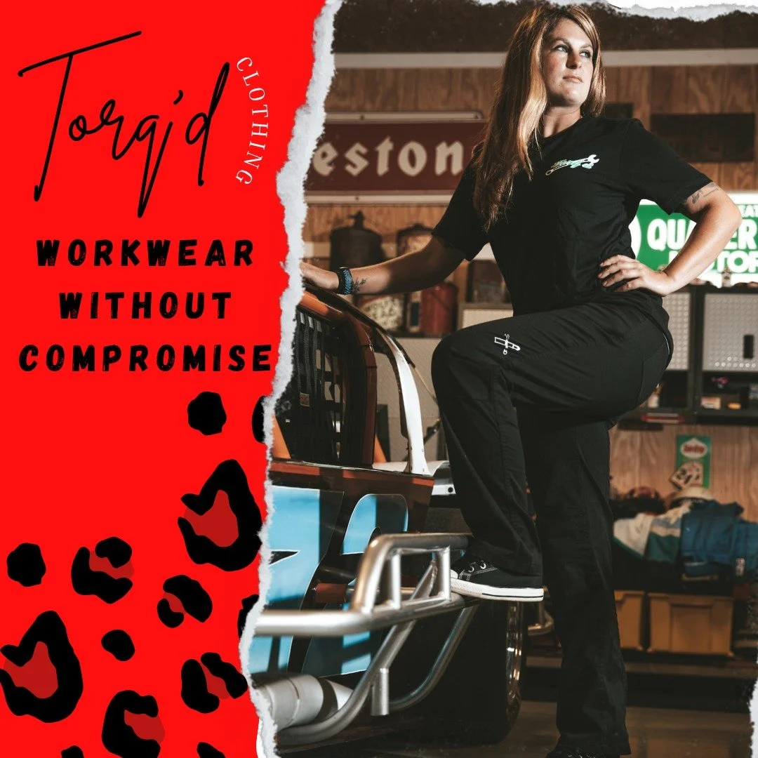 Torq'd is a clothing line designed for women by women for the racing and the automotive industries. Every woman in the garage faces the same problem, finding clothes that work for what we do or that will hold up to the day-to-day grind we face without spending a small fortune. That's where Torq'd comes in. The pants are designed to withstand everything our jobs include while still being flattering to the female body and without costing an arm and a leg.